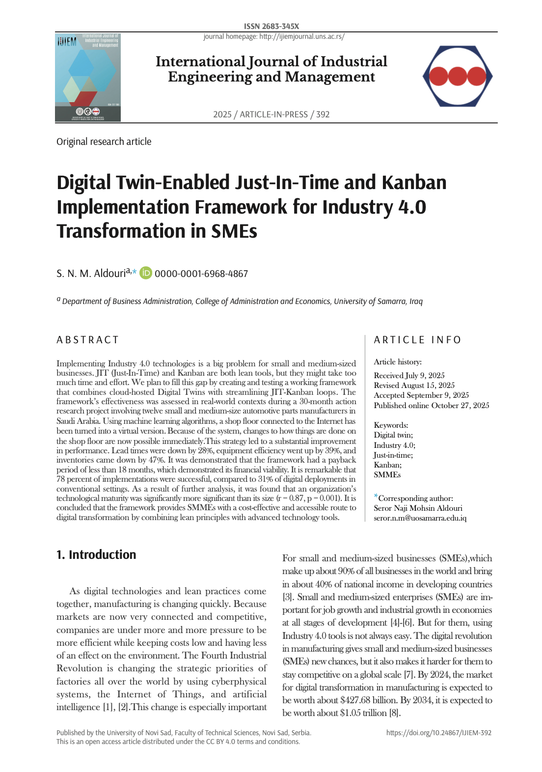 Copyright (c) 2025 International Journal of Industrial Engineering and Management
